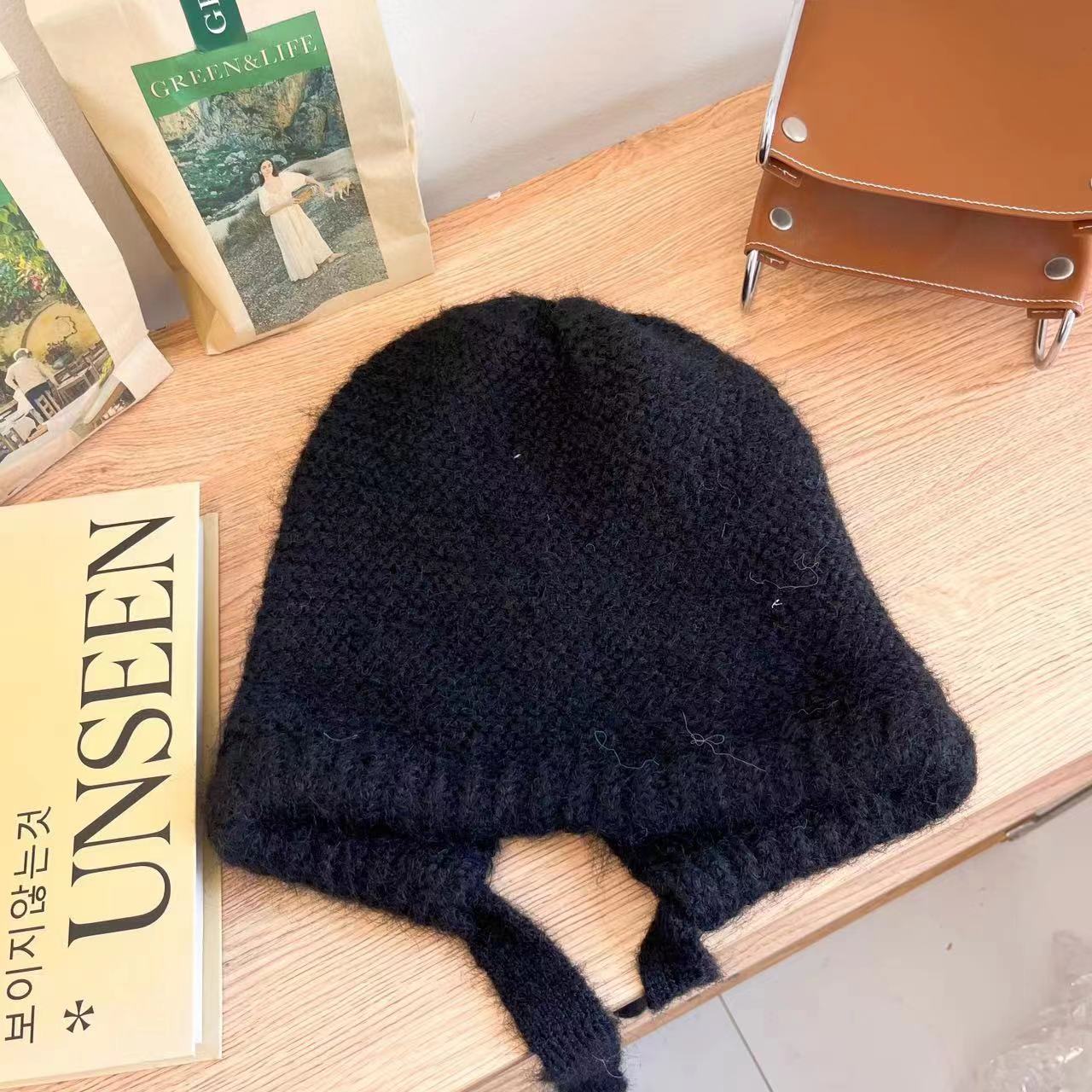 I ended up buying a cheap, black, "Real Wool Autumn and Winter Soft Plush Cute Sweet Pullover Women's Hats Korean Casual Shopping Ear Protection Strap Beanies Cap." It sounded perfect. It was cheap. I thought I won.